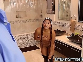 Horny daddy craves sex with Hispanic babysitter