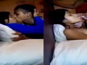 Cute girl gives a blowjob in a steamy video