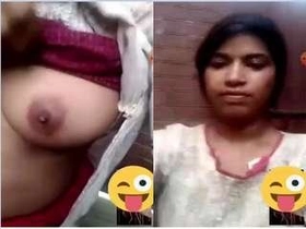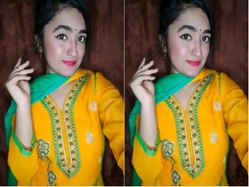 A beautiful Pakistani girl flaunts her breasts in a seductive manner