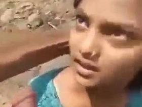 Outdoor sex video of Indian woman giving blowjob in open field
