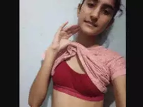 Cute girl from Assam teases with her boobs and masturbates