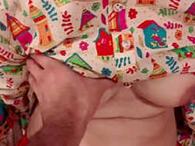 Bare-chested girlfriend caught on camera by boyfriend with large breasts