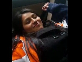 Erotic video of a stunning Pathani girl giving a blowjob in a car, exposing her breasts and pussy