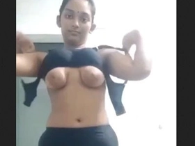 Indian girl teases with her breasts and pleasures herself