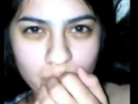 Watch a horny Indian girl pleasure herself with her fingers and mouth