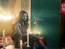 A woman from India with a promiscuous reputation reveals her breasts to a client in a hotel room