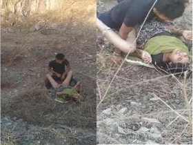 Outdoor Indian lovers indulge in passionate kissing and making out