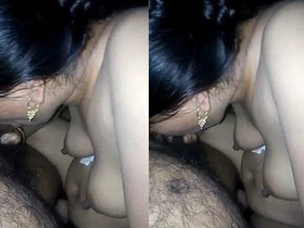 Indian wife enjoys oral sex on her boobs by colleague
