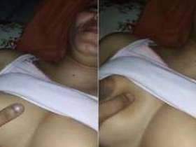 Indian girl masturbates to please her lover's breasts