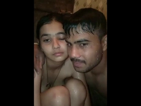 Soapy fun with cute Indian lovers in bathing clip