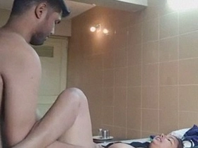 Hidden camera captures Indian girlfriend in steamy bathroom sex