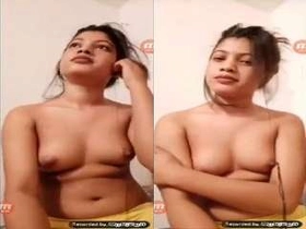 Indian girlfriend flaunts her small tits on video call