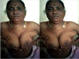 Indian auntie's big boobs in a steamy video
