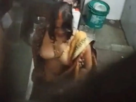 Indian wife takes a bath in front of camera