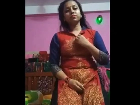 Sexy Bengali woman with large breasts pleasures herself with her hands