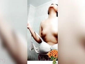 Watch a stunning wife with big boobs in a nude selfie video