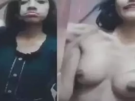 Nude Bengali girl squeezes her breasts in solo video