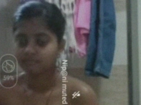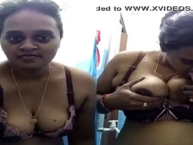 Bhabi's big boobs and sexy body in a bathroom