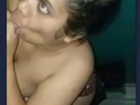 Exclusive video of a cute Indian girl flaunting her breasts and performing oral sex