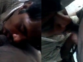 Desi wife sucks on her husband's breasts while giving him oral sex
