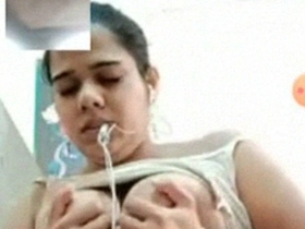 Exclusive video of a cute Indian girl playing with her tits and masturbating