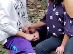 Indian lover gives outdoor blowjob in public
