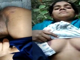 Village girl gets naughty in the middle of the forest