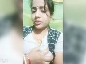 Bhabhi's exclusive video features her revealing her breasts and pussy