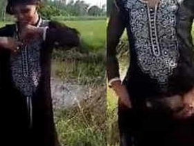 Desi babe flaunts her big boobs and pussy in outdoor video