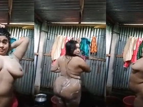 Indian village bhabhi's nude bathroom video with big boobs and ass