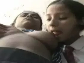 Indian schoolgirl and friend indulge in steamy sex on a bed