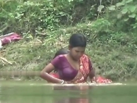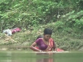 Bhabhi Ganga's cleavage-focused bath in the village