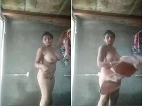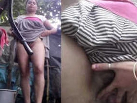 Indian woman Boudi takes a shower after urination