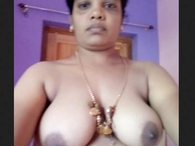 Enjoy a naughty bathroom selfie of a big-boobed Indian aunt