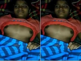 Shy Indian girl flaunts her breasts on video call