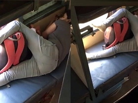 Desi babe with a hot body lifts her legs in the train
