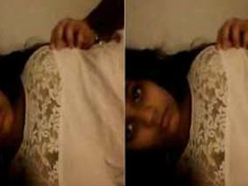 Desi babe spits on her boobs in explicit video