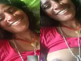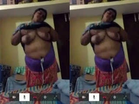 A mature Indian woman flaunts her breasts in a video call