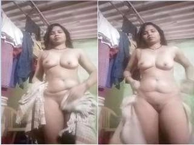 Watch a hot bhabhi from the countryside flaunt her large breasts and intimate area