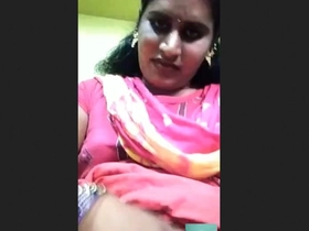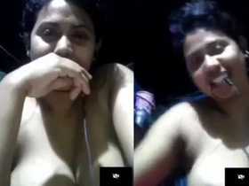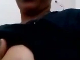 A Tamil transvestite reveals her breasts on a video call while fingering herself