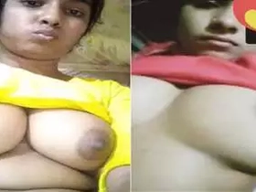 Attractive Indian girl displays her large breasts