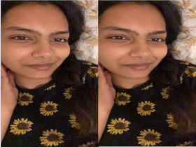 Indian girl pleasures herself with her fingers and tits