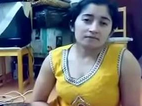 Indian girl teases with her breasts and pleasures herself