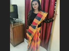 Desi village aunty strips and teases in sari